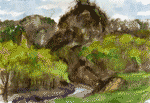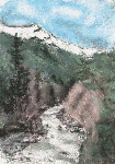 май 2003, Кавказ, близ порога Аманхыт, Кубань, 29.7* 21, этюд, акварель, гуашь, бумага